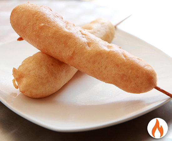 vienesa envuelta en masa de maiz y vainilla(masa es dulce)