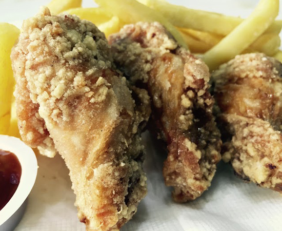 Alitas apanada frita. Puede ser picante o sin picante.
